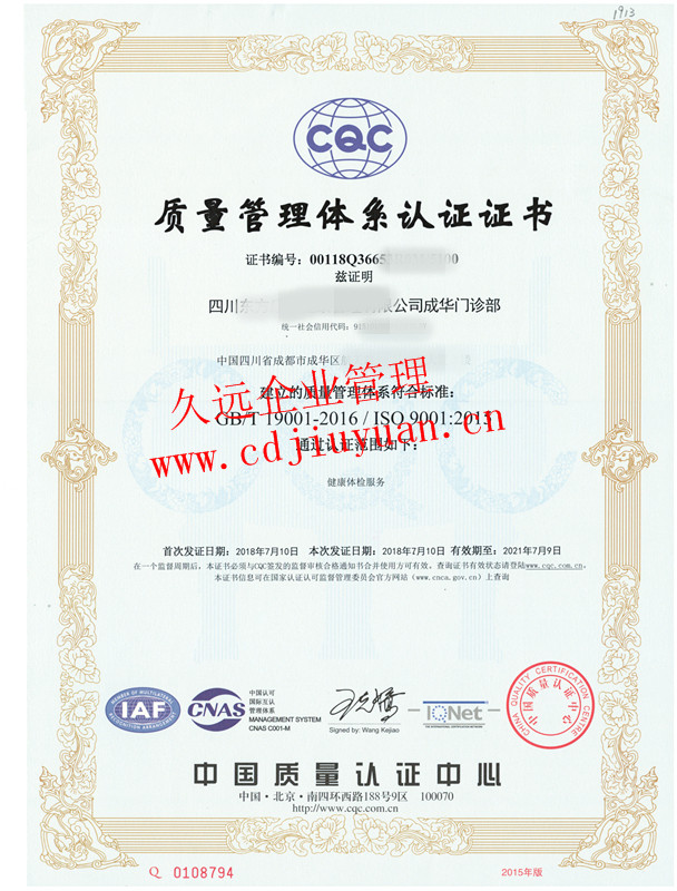 質(zhì)量管理體系認證證書