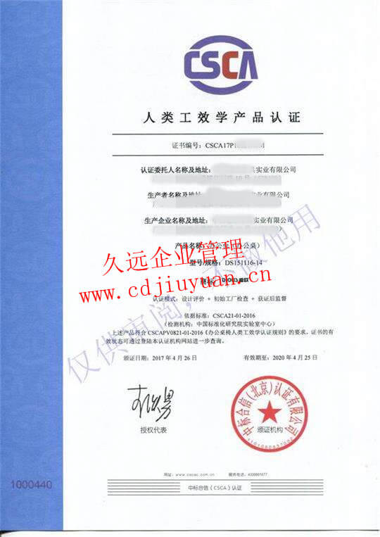 人類工效學(xué)產(chǎn)品認證證書