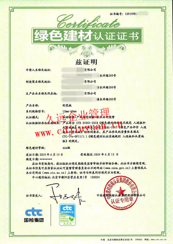 綠色產(chǎn)品認證證書